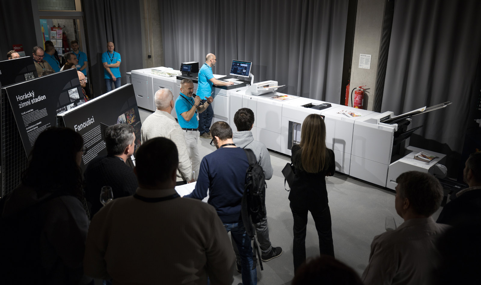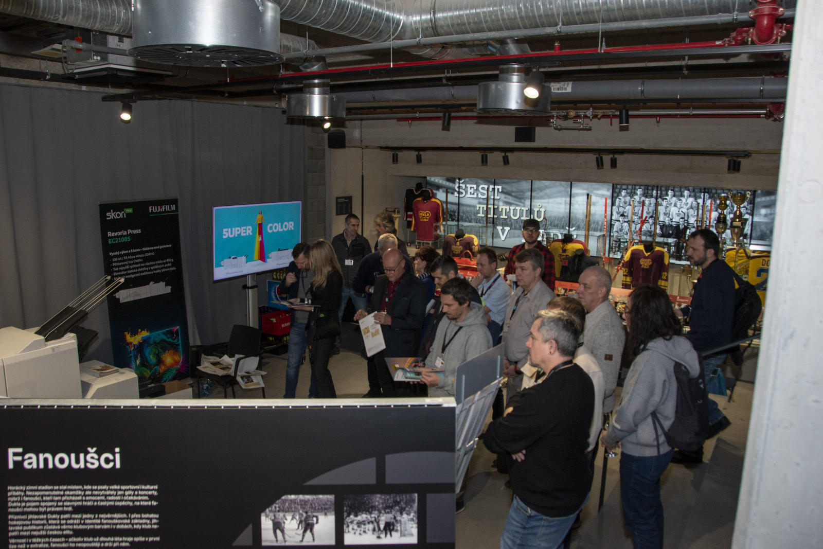 Exkluzivní prostory síně slávy HC Dukla Jihlava byly epickou kulisou pro naši instalaci stroje Fujifilm Revoria Press EC2100S v maximální konfiguraci čítající úctyhodných 9m na délku. Možná si kladete otázku: „Proč hned tak komplexní konfigurace?“ V rámci dvoudenní akce jsme všem návštěvníkům ukázali všestrannost tohoto 5UPER COLOR stroje. Celkem jsme na místě vytiskly 38 000 archů SRA3. Jednalo se o reálné tiskové zakázky, které jsme následně zavezli našim váženým zákazníkům. Také jsme předvedli, jak se stroj dokáže vyrovnat i s tiskem brožur V1, které obsahovaly zlatý a čirý toner. V neposlední řadě jsme ukázali automatický oboustranný tisk na dlouhý banner s využitím SMG. Demonstrovali jsme tak schopnost stroje produkovat i takto specifické zakázky ve vynikající kvalitě včetně precizního předo/zadního soutisku. Fujifilm Revoria Press EC2100S je jednoznačně skutečným strojem na peníze.